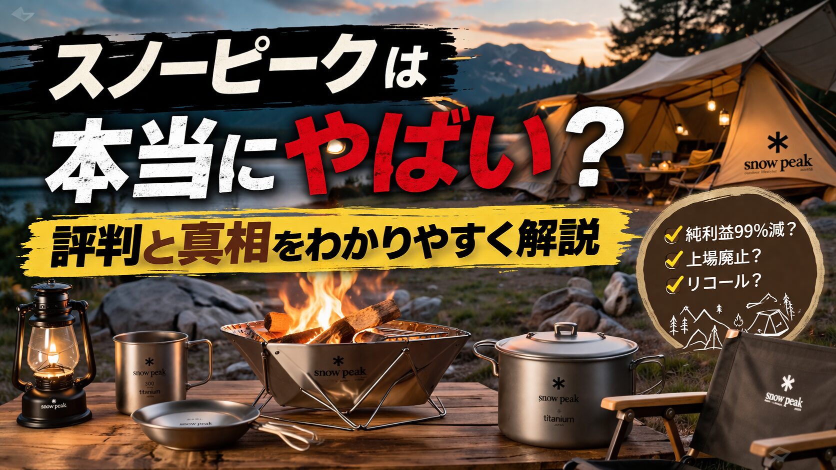 スノーピークがやばいと聞くと、ちょっと不安になりますよね。口コミは良さそうなのに、純利益99%減や上場廃止、リコールの話まで見かけると、結局どう受け止めればいいのか迷いやすいかなと思います。