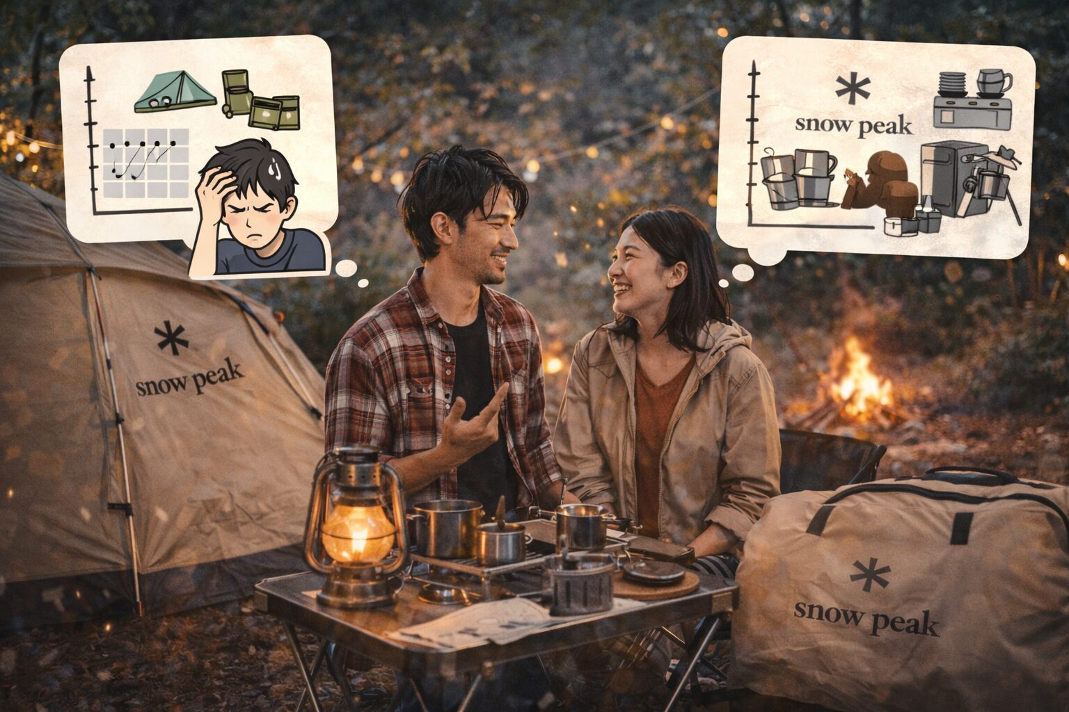 私の感覚では、スノーピークの価格に納得しやすいのは、キャンプ頻度がある程度高い人、道具を長く使いたい人、サイト全体の統一感を大事にしたい人です。逆に、年に数回だけで十分、できるだけ軽くて安い装備がいい、ブランドより機能最優先、という人には割高に感じやすいかもしれません。ここは善し悪しじゃなく、相性です。
