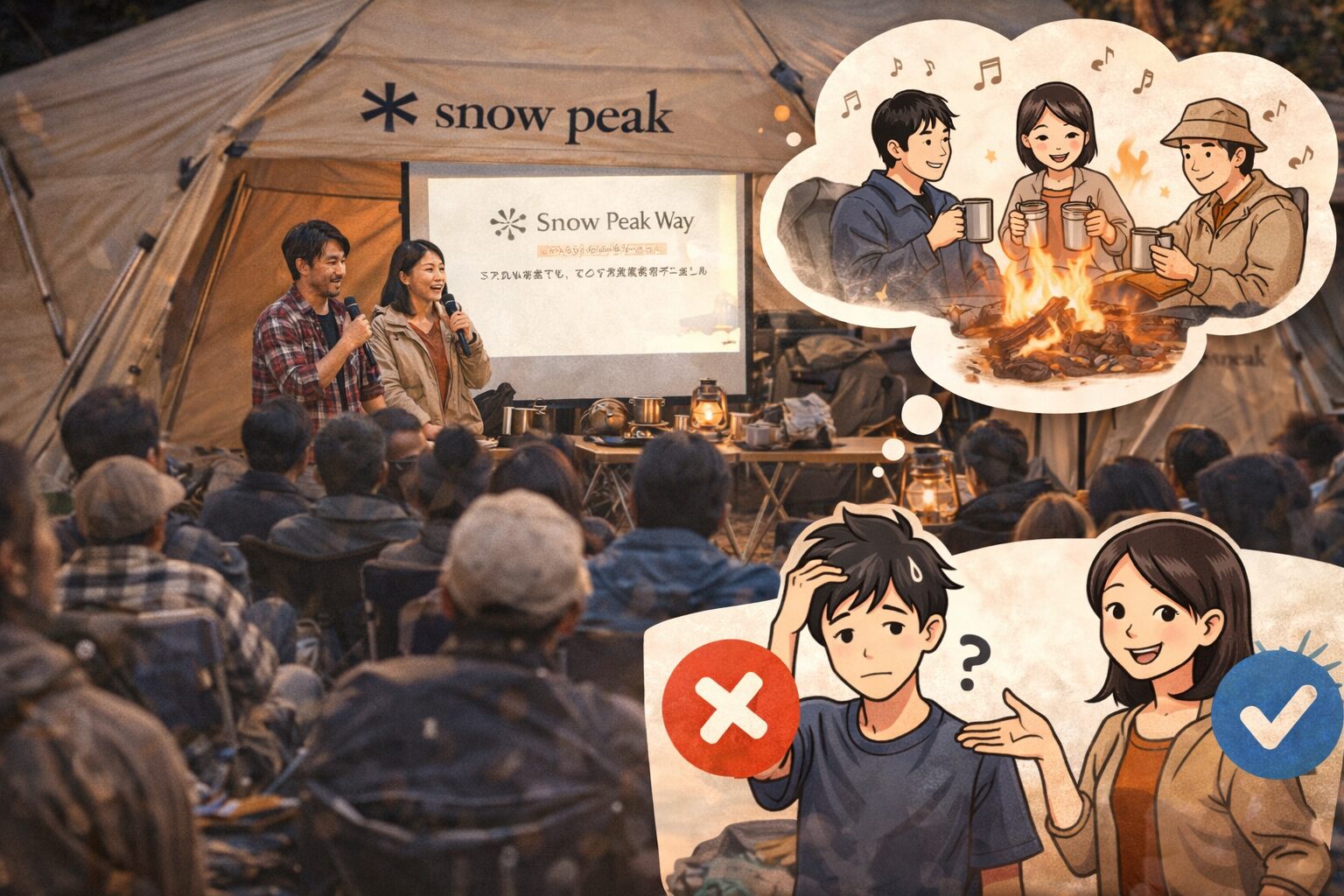 一方で、誰にでも無条件で刺さるわけではありません。イベント独特の距離感や熱量が強く感じられることもあるので、人によっては「ちょっと濃いかも」と思うはずです。ここも正直でいいと思います。ブランドイベントに対して、気軽な情報収集の場を求める人と、世界観に浸りたい人では満足度が違いますからね。だから、Snow Peak Wayの評判を参考にするときは、「盛り上がっていた」「楽しかった」という感想だけでなく、自分がそういう雰囲気を楽しめるタイプかどうかで見たほうがいいです。